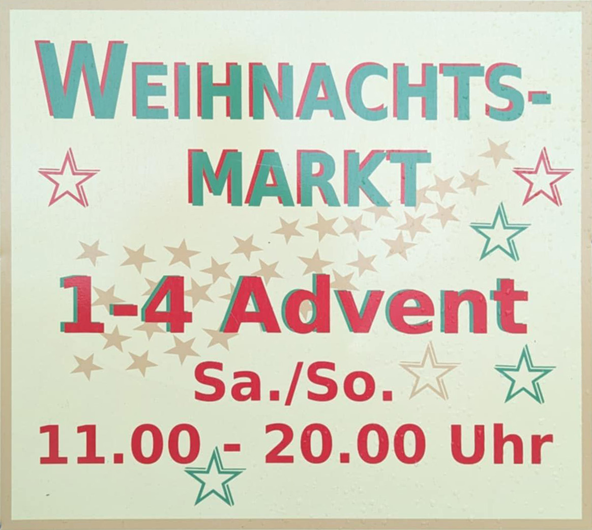 Alle 4 Adventswochenenden Samstags/Sonntags von 11 bis 20 Uhr